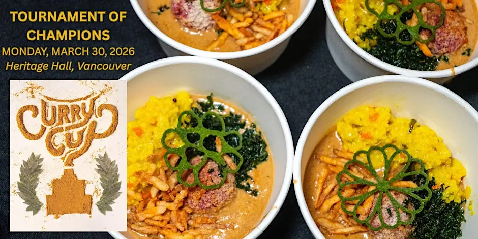 On Monday, March 30, 2026, from 6h30 pm to 9h00 pm, 8 of the past Curry Cup Winners will compete in The Curry Cup – Tournament of Champions and you get to taste all of their creations!