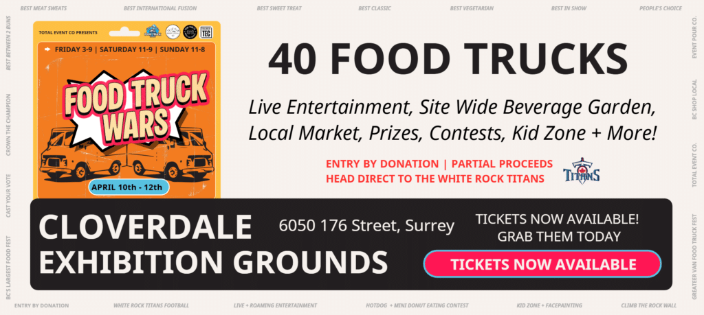Surrey’s BIGGEST street food showdown returns! Catch a wide variety of Greater Vancouver’s most exciting local food trucks all in one place, ready for your to feast to help them take home the grand prize and bragging rights for 2026!